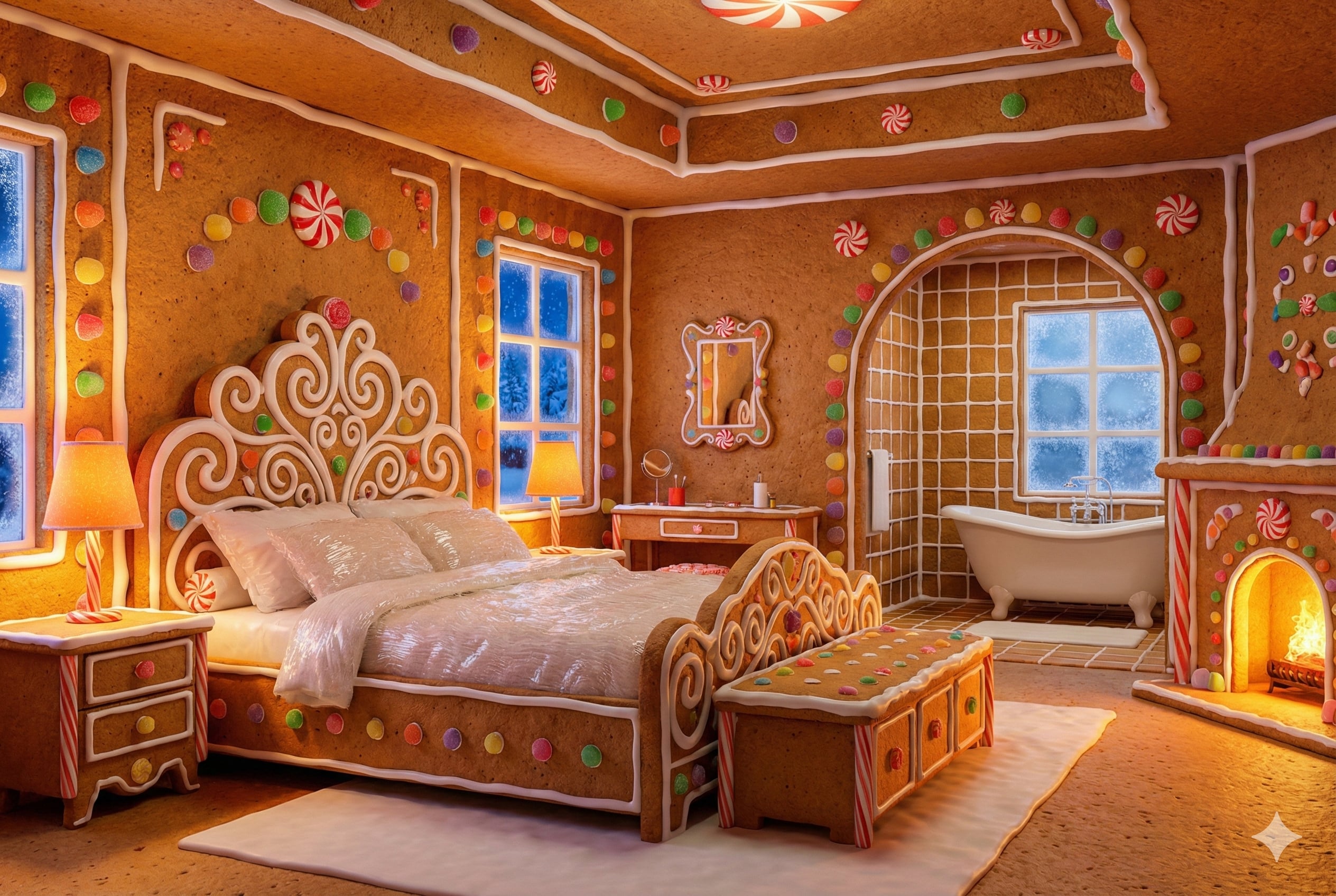 Set on a sprawling 1,225sqm peppermint-paved parcel, this freestanding Yuletide bake-style beauty doesn’t just lean into Christmas charm – it cannonballs into it, hot cocoa in hand. From spun sugar-cookie floors to a bubbling party-sized hot chocolate spa, this is a property that knows exactly what it is… and absolutely owns it.