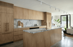 A perfect environment for those who love to entertain, the layout is fluid, open and generous with an effortless integration with the outdoors and expanses of glass that harness sunshine. Living and dining spaces are separated by a deluxe island kitchen appointed with Super Dolomite marble benches, bespoke timber joinery, an integrated fridge and state-of-the-art Miele appliances which will impress the most fastidious chefs.