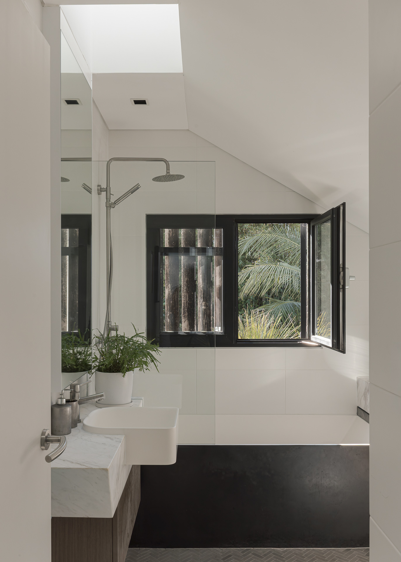 The kitchen anchors the home with its monolithic breakfast island and integrated appliances, flowing to a sunlit living space that opens completely to the outdoors. Here, a lush established garden and outdoor kitchen with built-in barbecue create an alfresco retreat, perfect for year-round entertaining. Upstairs, the master suite enjoys tranquil views across the native rooftop landscape, while a study zone, extensive built-in storage and guest powder room make for easy living.